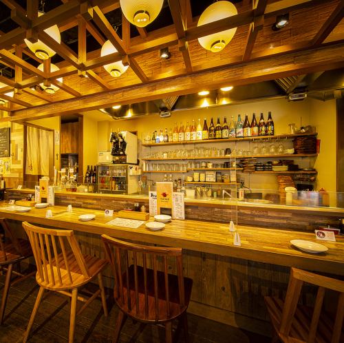 目の前での調理を楽しみながらお食事ができるカウンター席♪